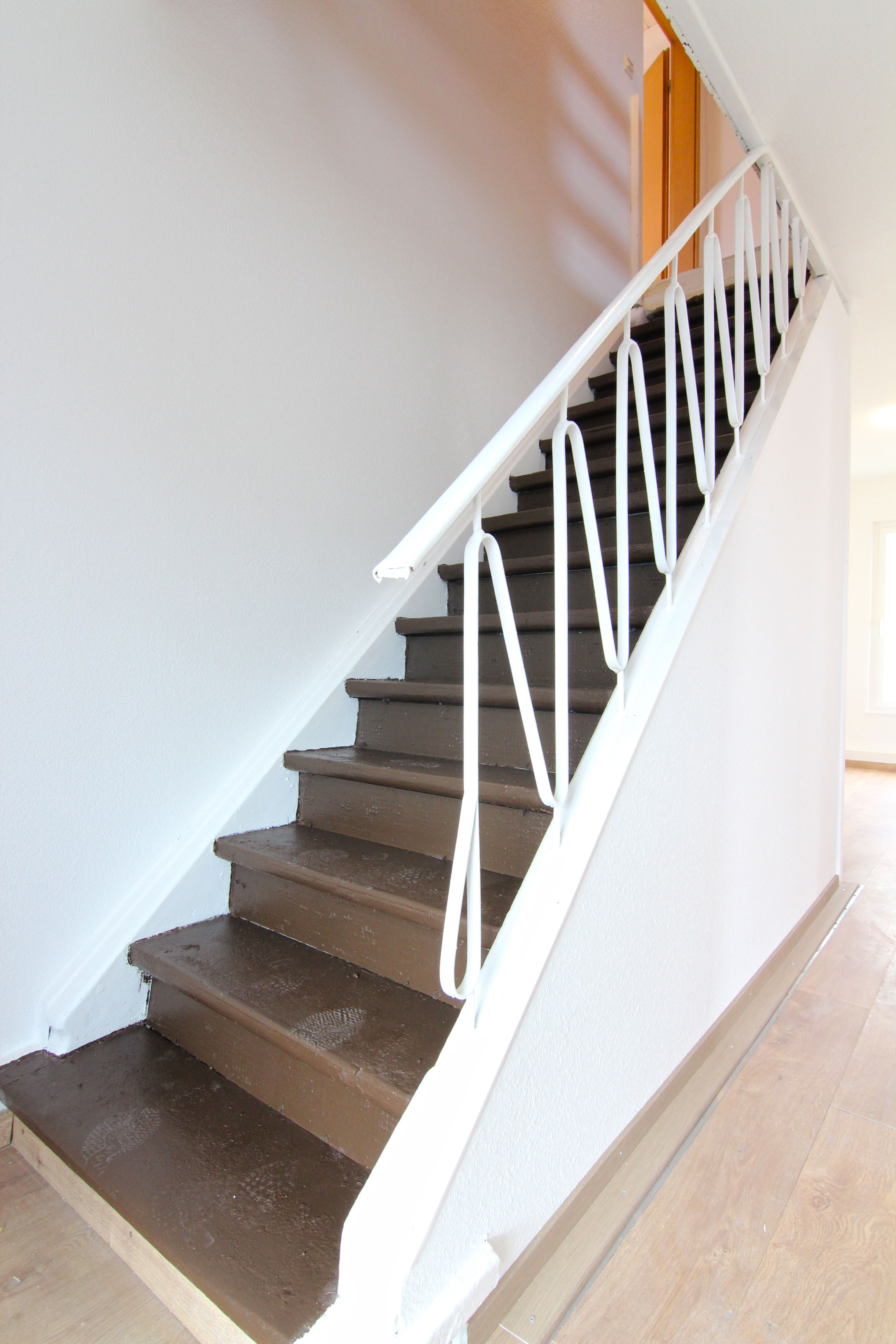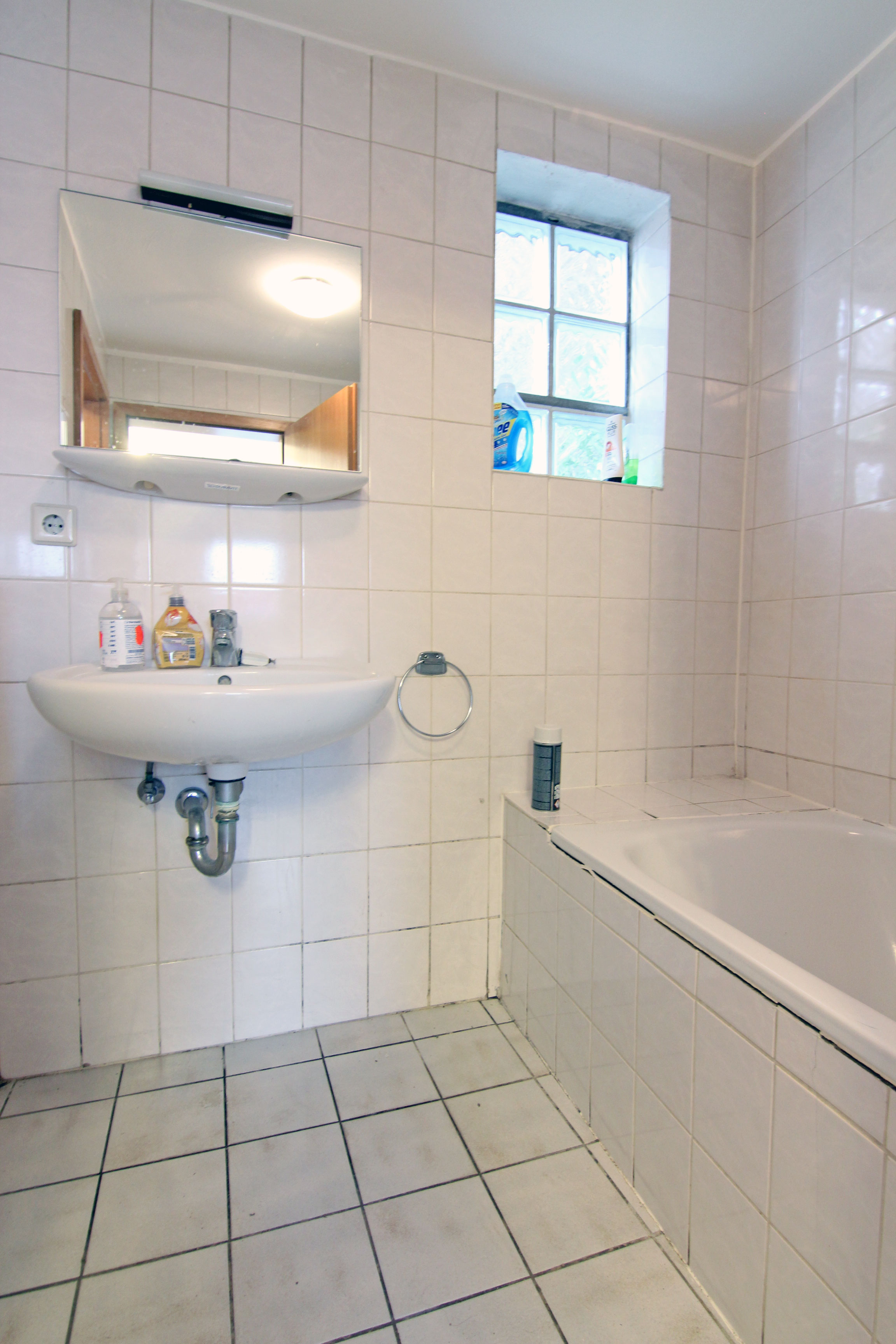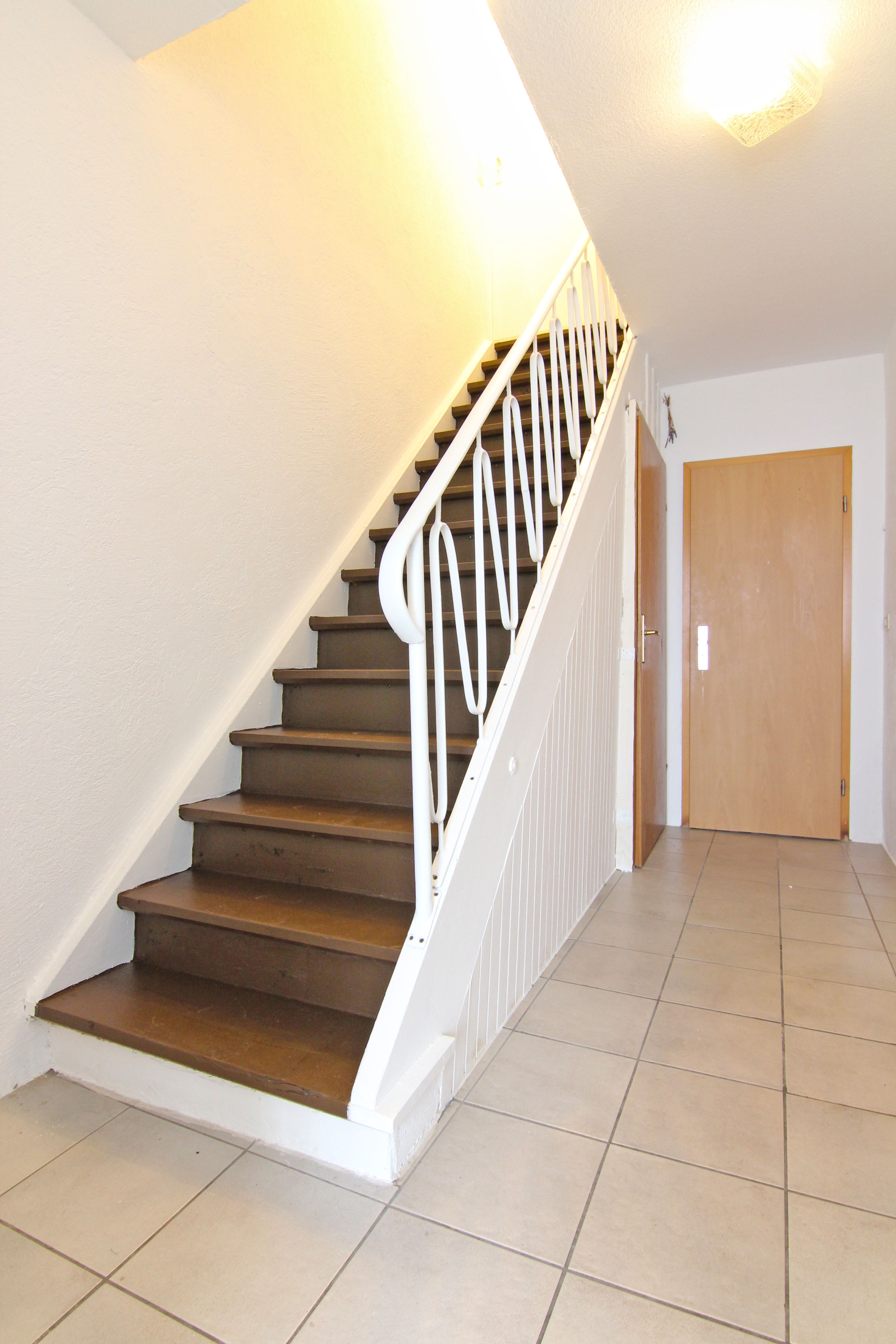 2 Zimmer über zwei Etagen, einfache Einbauküche, Tageslichtbad mit Wanne, Schlafzimmer im OG.