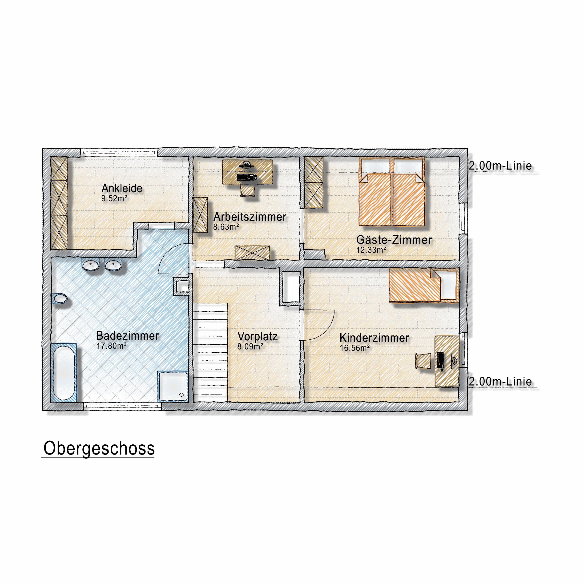 Das Einfamilienhaus erstreckt sich über Erdgeschoss, Obergeschoss und ein frisch ausgebautes Dachgeschoss und bietet insgesamt rund 137 m² Wohnfläche. Im Erdgeschoss stehen ca. 64 m² zur Verfügung, im Obergeschoss ca. 73 m², und im Dachgeschoss noch einmal ca. 37 m² (keine Wohnfläche laut Landesbauordnung, aber faktisch natürlich vorhanden). Das Haus ist teilunterkellert und steht auf einem 687 m² großen, vollständig eingefriedeten Grundstück.