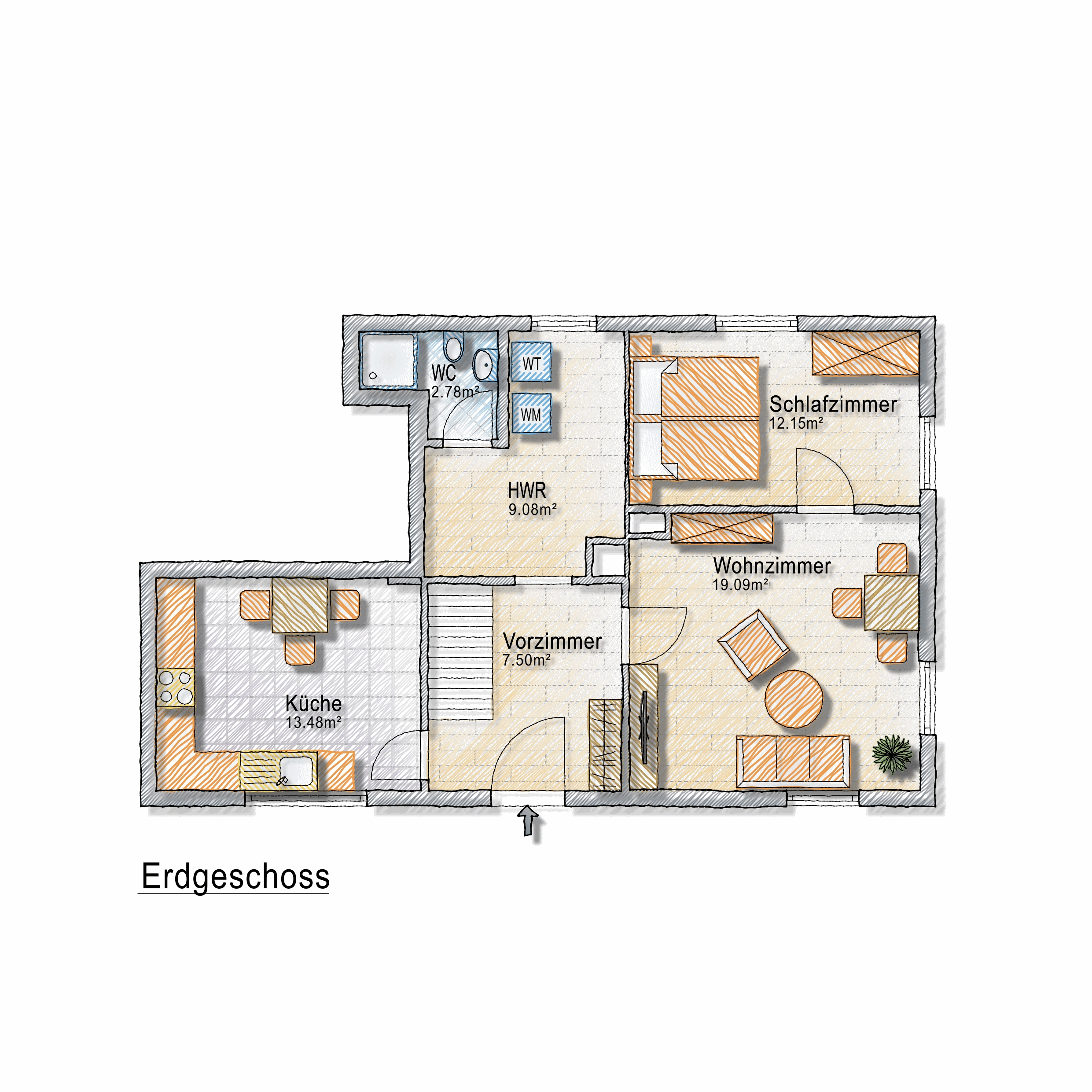 Wer also Freude am Heizen mit Holz hat und die Wärme eines echten Ofens zu schätzen weiß, findet hier ein gemütliches Zuhause mit ganz eigenem Charakter. Für reine „Zentralheizungs-Menschen“ ist es hingegen nicht das richtige Objekt.