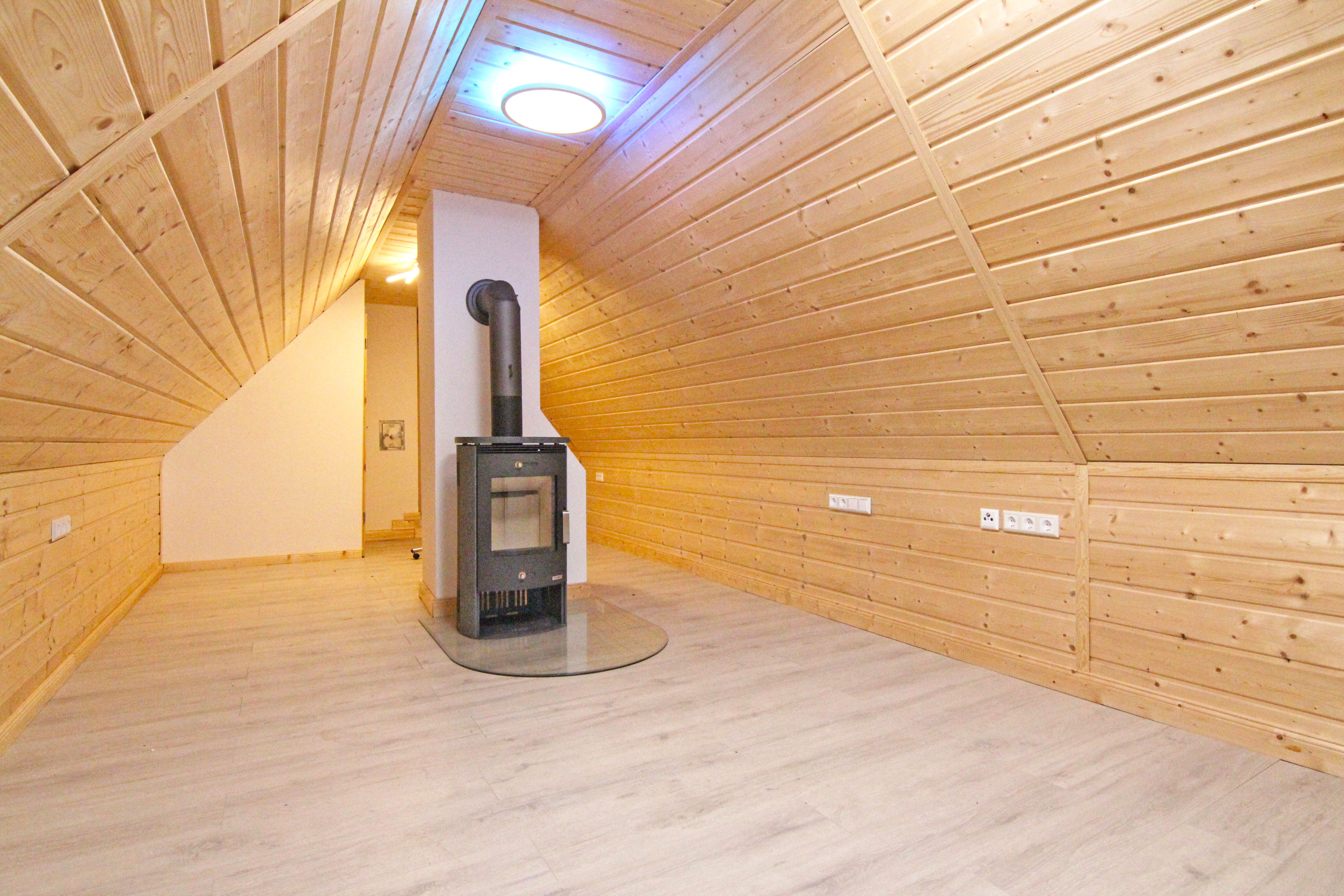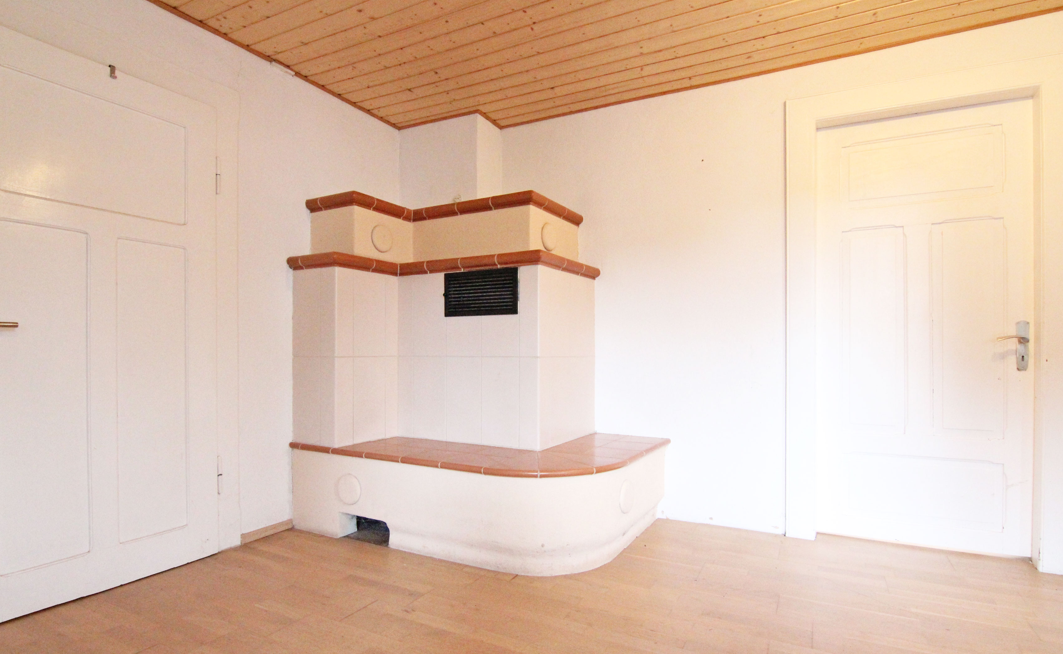 Beheizt wird das Gebäude über einen Kachelofen im Erdgeschoss, dessen Lüftungsschächte auch die oberen Etagen versorgen. Zusätzlich gibt es einen Ofen im Badezimmer sowie einen weiteren im Dachgeschoss, der 2024 eingebaut wurde.