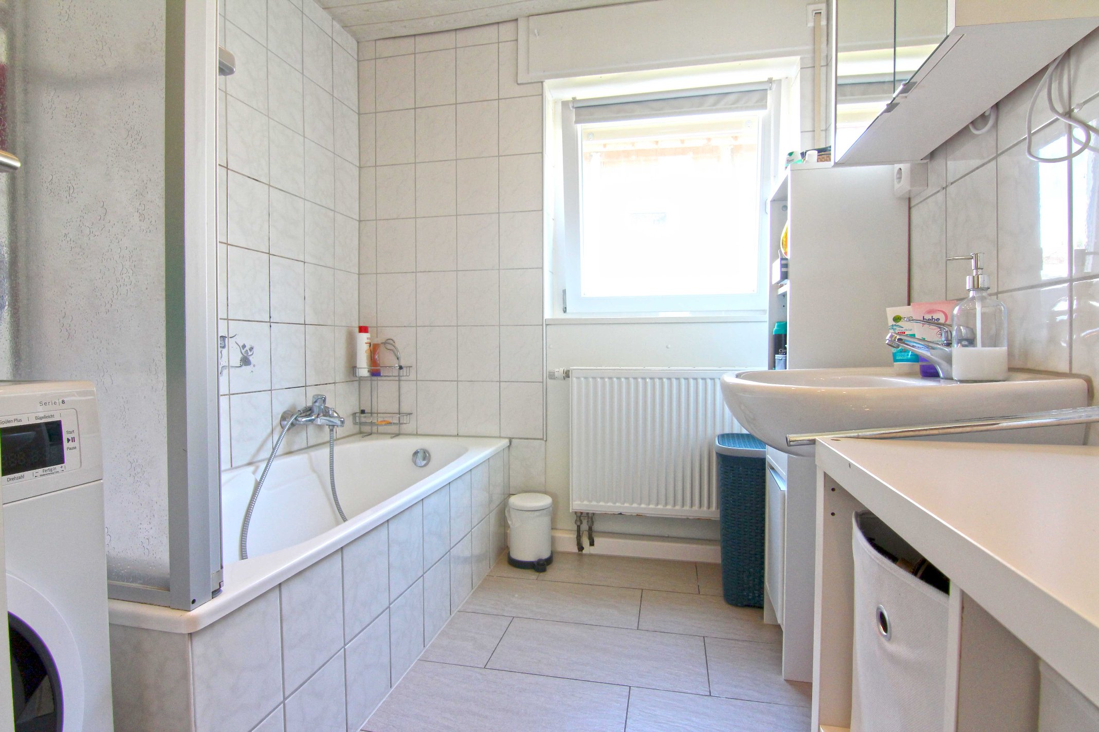 Das Tageslichtbad ist mit einer Badewanne ausgestattet, zusätzlich gibt es ein separates WC. Ein praktischer Abstellraum innerhalb der Wohnung sorgt für zusätzlichen Stauraum, außerdem steht ein kleiner Kellerraum zur Verfügung.